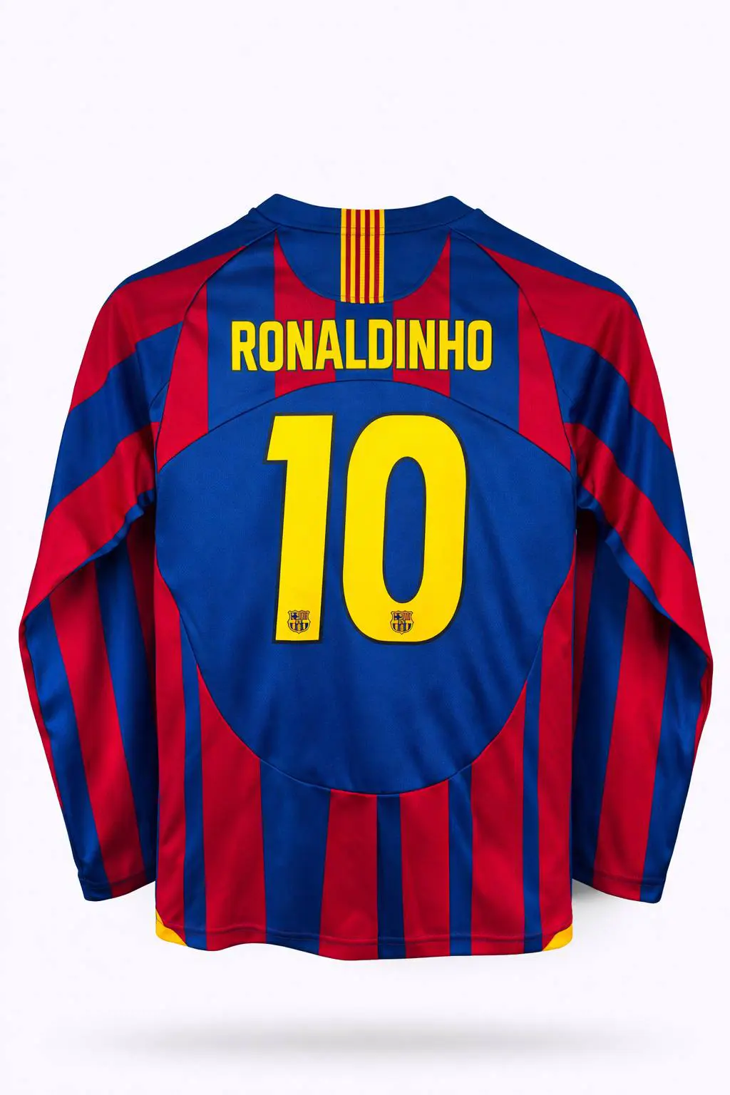 Форма футбольная детская клуба Барселона с фамилией игрока Роналдиньо под номером 10, домашний комплект сезона 2005/2006.