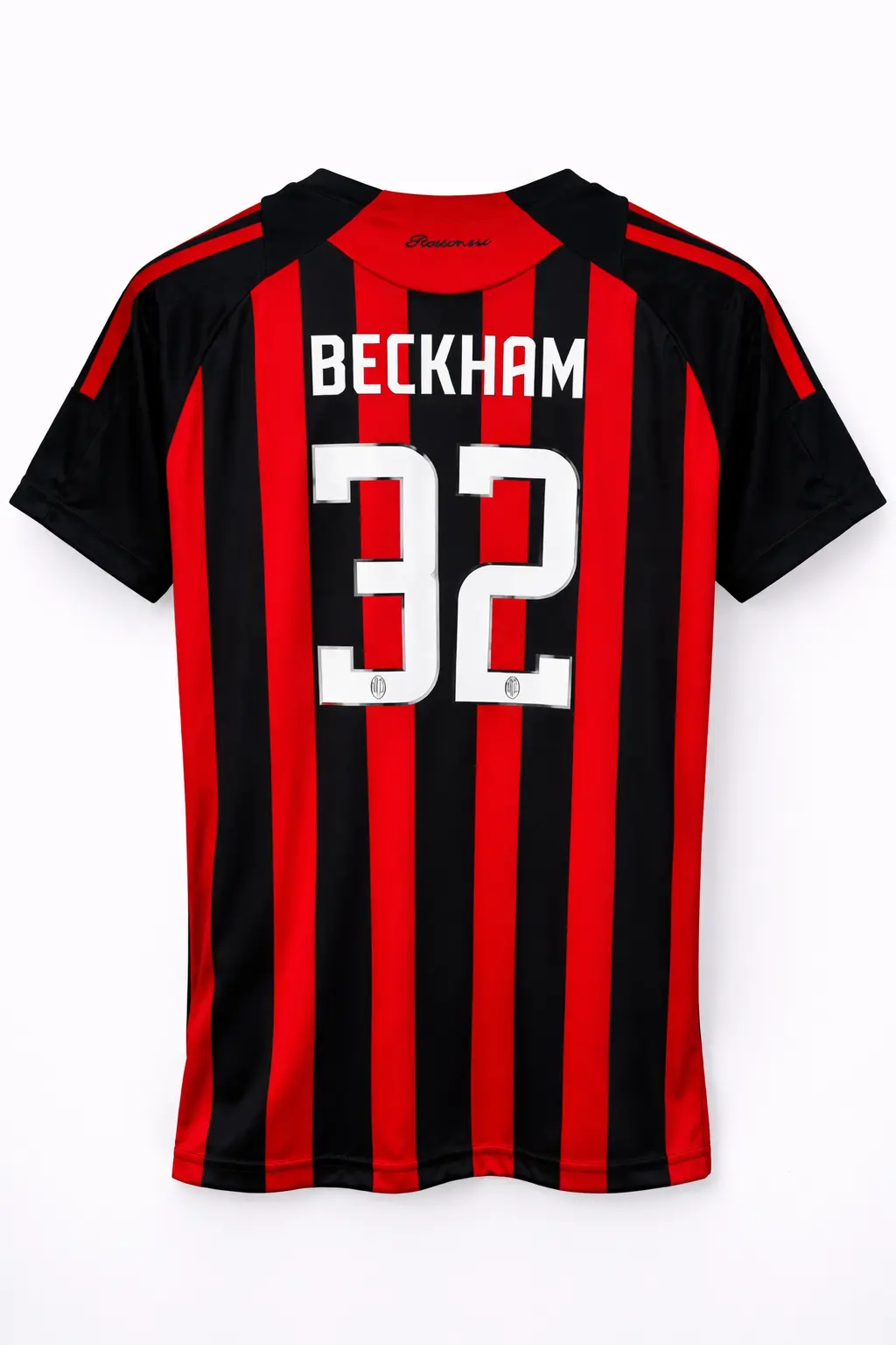 Форма футбольная детская АС Милан с фамилией игрока Дэвида Бекхэма под номером 32, домашний комплект сезона 2008/2009.