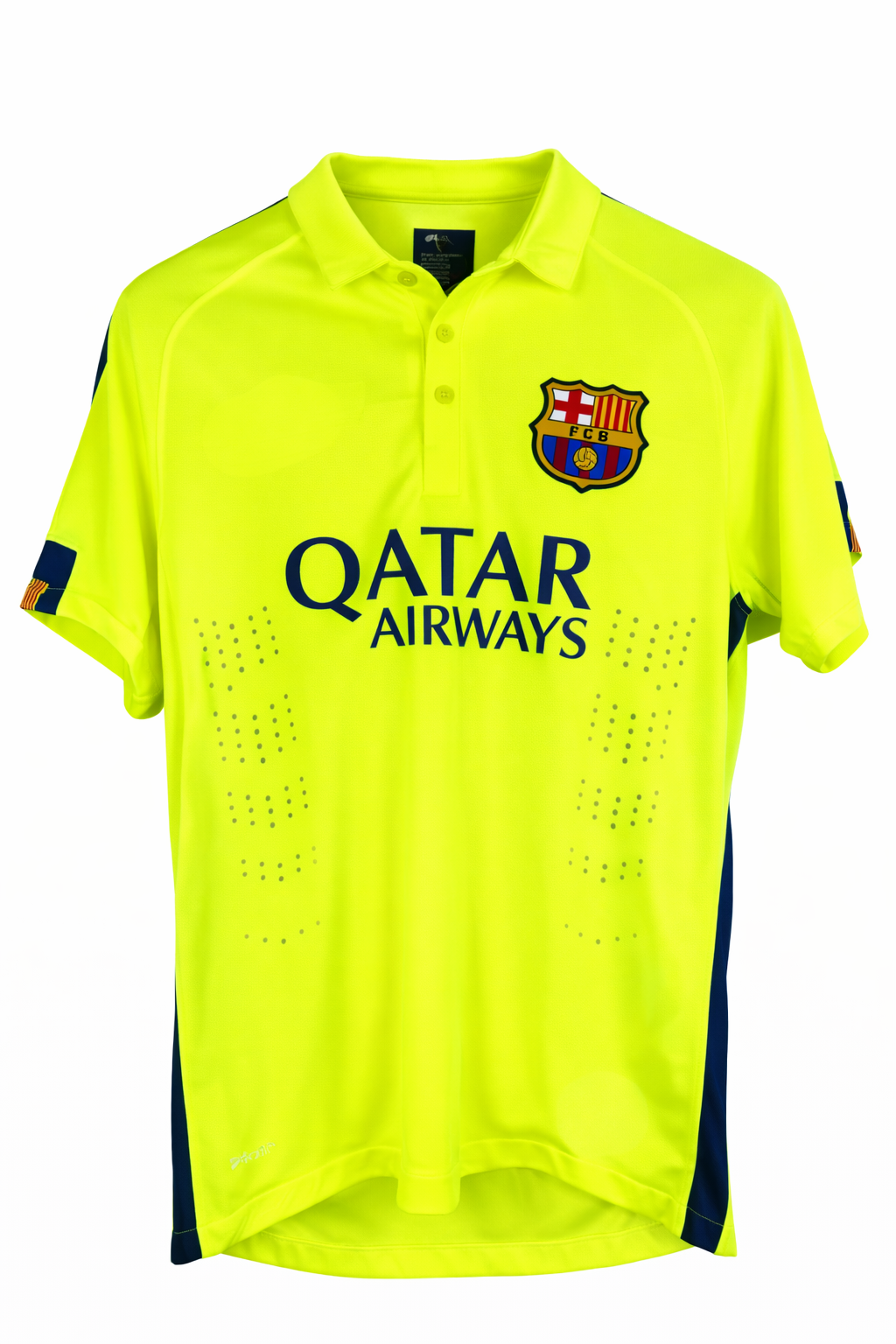 Футболка футбольная клуба Барселона, гостевой комплект сезона 2014/15.Погрузитесь в мир футбольного энтузиазма и покажите свою любовь к футболу с нашей стильной мужской футболкой, которая создана для настоящих фанатов! Если ты — преданный поклонник Барселоны, то эта футбольная футболка станет отличным дополнением к твоему гардеробу. Яркий дизайн и высококачественные материалы делают её идеальным выбором как для матчей, так и для повседневной носки.Каждая деталь этой футболки вдохновлена духом игры, отражая атмосферу стадиона и поддерживая команду в любой ситуации. Удобный крой и дышащая ткань гарантируют комфорт даже в самые жаркие дни на трибунах или во время активных тренировок. Находясь среди других фанатов, ты сможешь без труда продемонстрировать свою приверженность Барселоне.Не упустите шанс стать обладателем этой уникальной футболки! Многие уже оценили её качество и утонченность — присоединяйся к их числу. Покажи всему миру, что ты истинный поклонник, готовый поддержать свою любимую команду в любой ситуации. Не упусти возможность сделать свой стиль уникальным и выразить свою страсть к футболу, заказывая нашу футболку уже сегодня. Сделай шаг навстречу победам вместе с Барселоной! ХОДУ