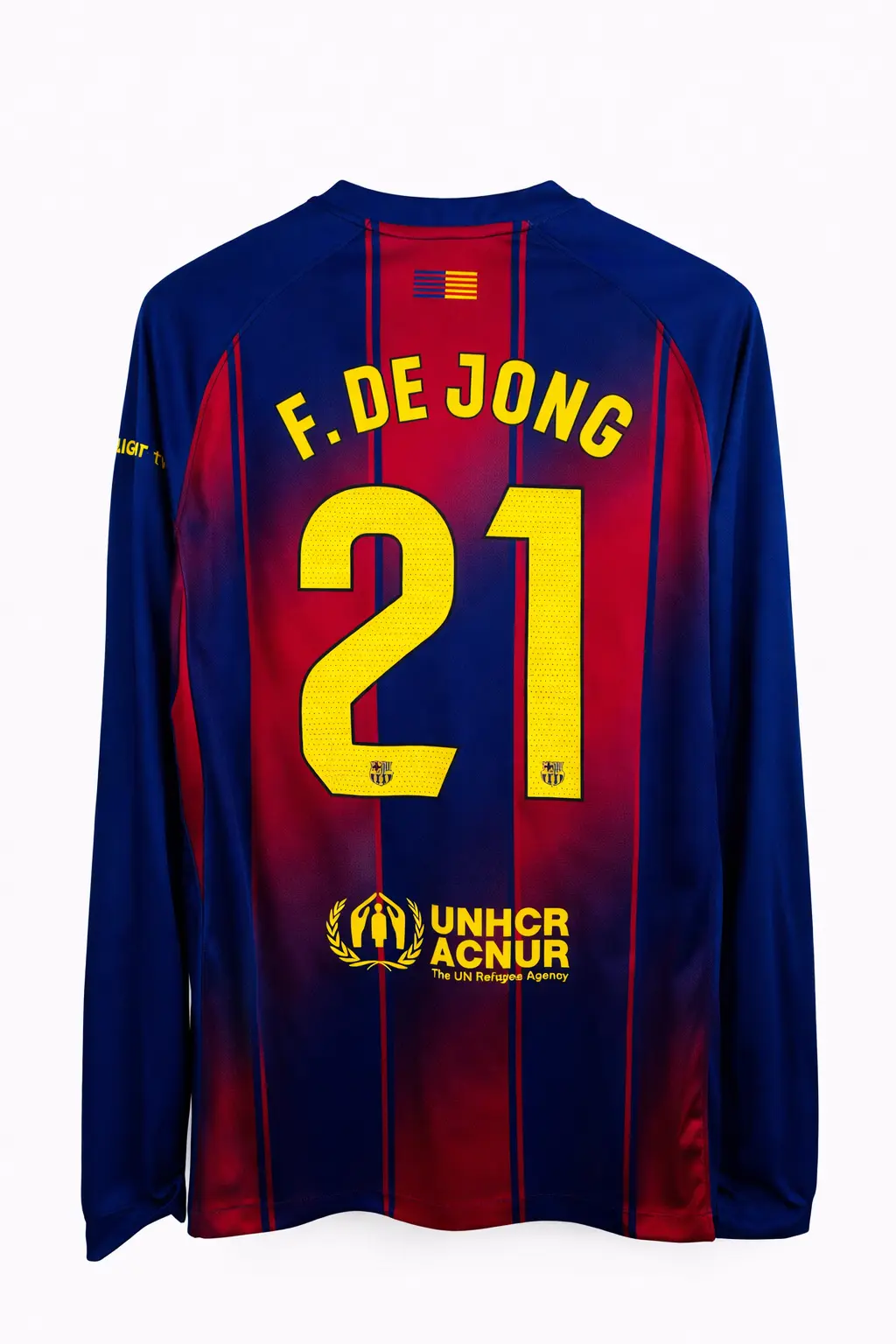 Футболка футбольная клуба Барселона Френки де Йонг 21, домашний комплект нового сезона 2025/2026.Погрузитесь в мир футбольного энтузиазма и покажите свою любовь к футболу с нашей стильной мужской футболкой, которая создана для настоящих фанатов! Если ты — преданный поклонник Барселоны, то эта футбольная футболка станет отличным дополнением к твоему гардеробу. Яркий дизайн и высококачественные материалы делают её идеальным выбором как для матчей, так и для повседневной носки.Каждая деталь этой футболки вдохновлена духом игры, отражая атмосферу стадиона и поддерживая команду в любой ситуации. Удобный крой и дышащая ткань гарантируют комфорт даже в самые жаркие дни на трибунах или во время активных тренировок. Находясь среди других фанатов, ты сможешь без труда продемонстрировать свою приверженность Барселоне.Не упустите шанс стать обладателем этой уникальной футболки! Многие уже оценили её качество и утонченность — присоединяйся к их числу. Покажи всему миру, что ты истинный поклонник, готовый поддержать свою любимую команду в любой ситуации. Не упусти возможность сделать свой стиль уникальным и выразить свою страсть к футболу, заказывая нашу футболку уже сегодня. Сделай шаг навстречу победам вместе с ХОДУ!