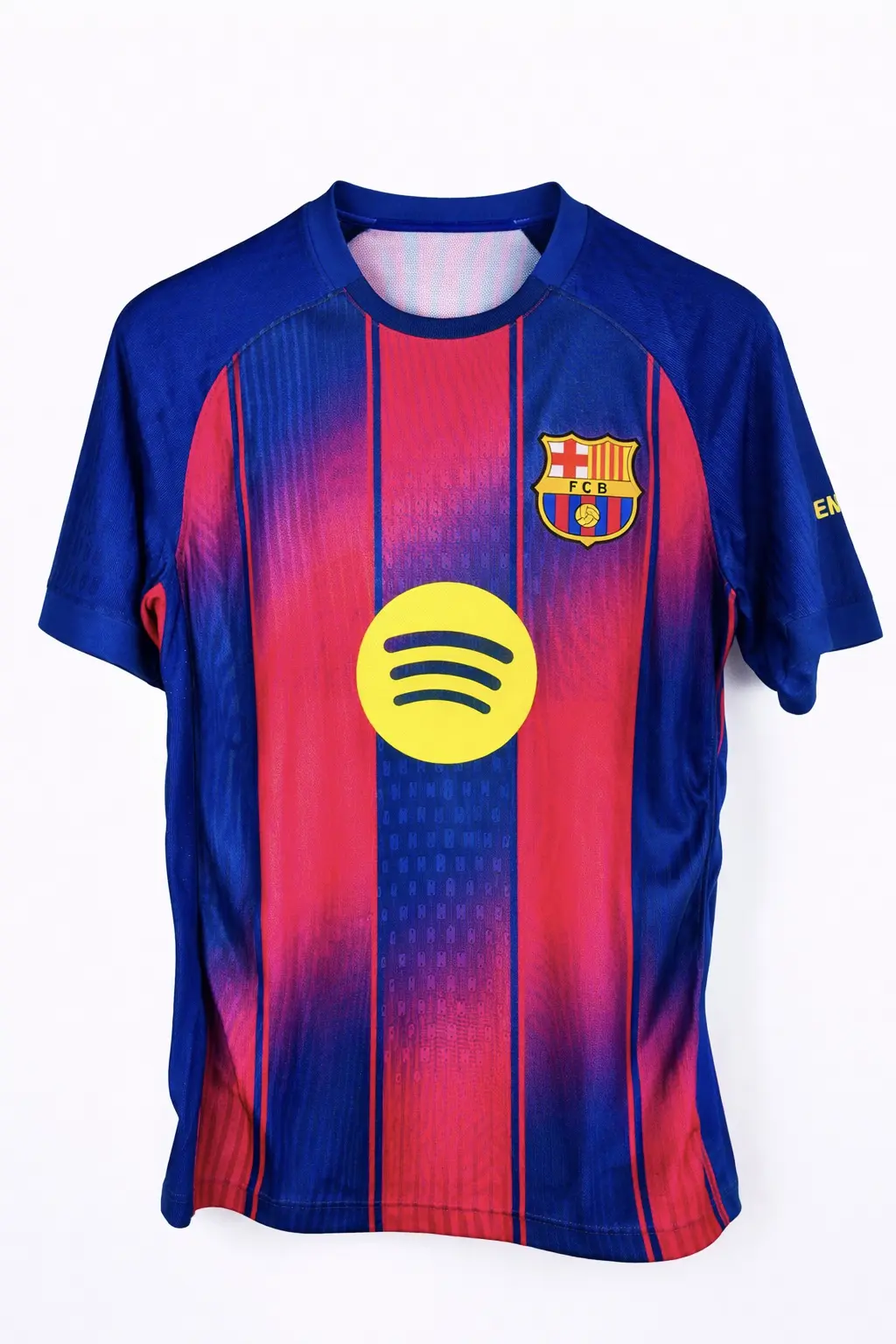 Футболка футбольная Барселона домашний комплект нового сезона 2025/26.Погрузитесь в мир футбольного энтузиазма и покажите свою любовь к футболу с нашей стильной мужской футболкой, которая создана для настоящих фанатов! Если ты — преданный поклонник Барселоны, то эта футбольная футболка станет отличным дополнением к твоему гардеробу. Яркий дизайн и высококачественные материалы делают её идеальным выбором как для матчей, так и для повседневной носки.Каждая деталь этой футболки вдохновлена духом игры, отражая атмосферу стадиона и поддерживая команду в любой ситуации. Удобный крой и дышащая ткань гарантируют комфорт даже в самые жаркие дни на трибунах или во время активных тренировок. Находясь среди других фанатов, ты сможешь без труда продемонстрировать свою приверженность Барселоне.Не упустите шанс стать обладателем этой уникальной футболки! Многие уже оценили её качество и утонченность — присоединяйся к их числу. Покажи всему миру, что ты истинный поклонник, готовый поддержать свою любимую команду в любой ситуации. Не упусти возможность сделать свой стиль уникальным и выразить свою страсть к футболу, заказывая нашу футболку уже сегодня. Сделай шаг навстречу победам вместе с Барселоной! «Visca el Barça i Visca Catalunya!»