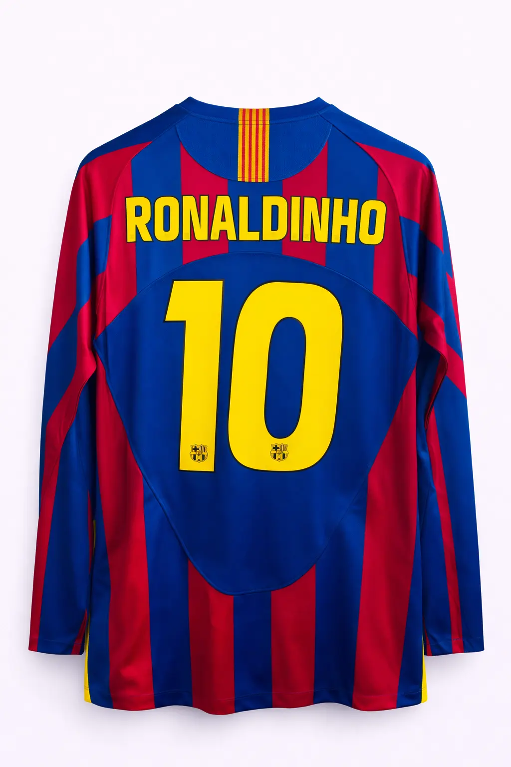 Футболка футбольная клуба Барселона с фамилией Роналдиньо под номером 10, домашний комплект сезона 2005/2006.