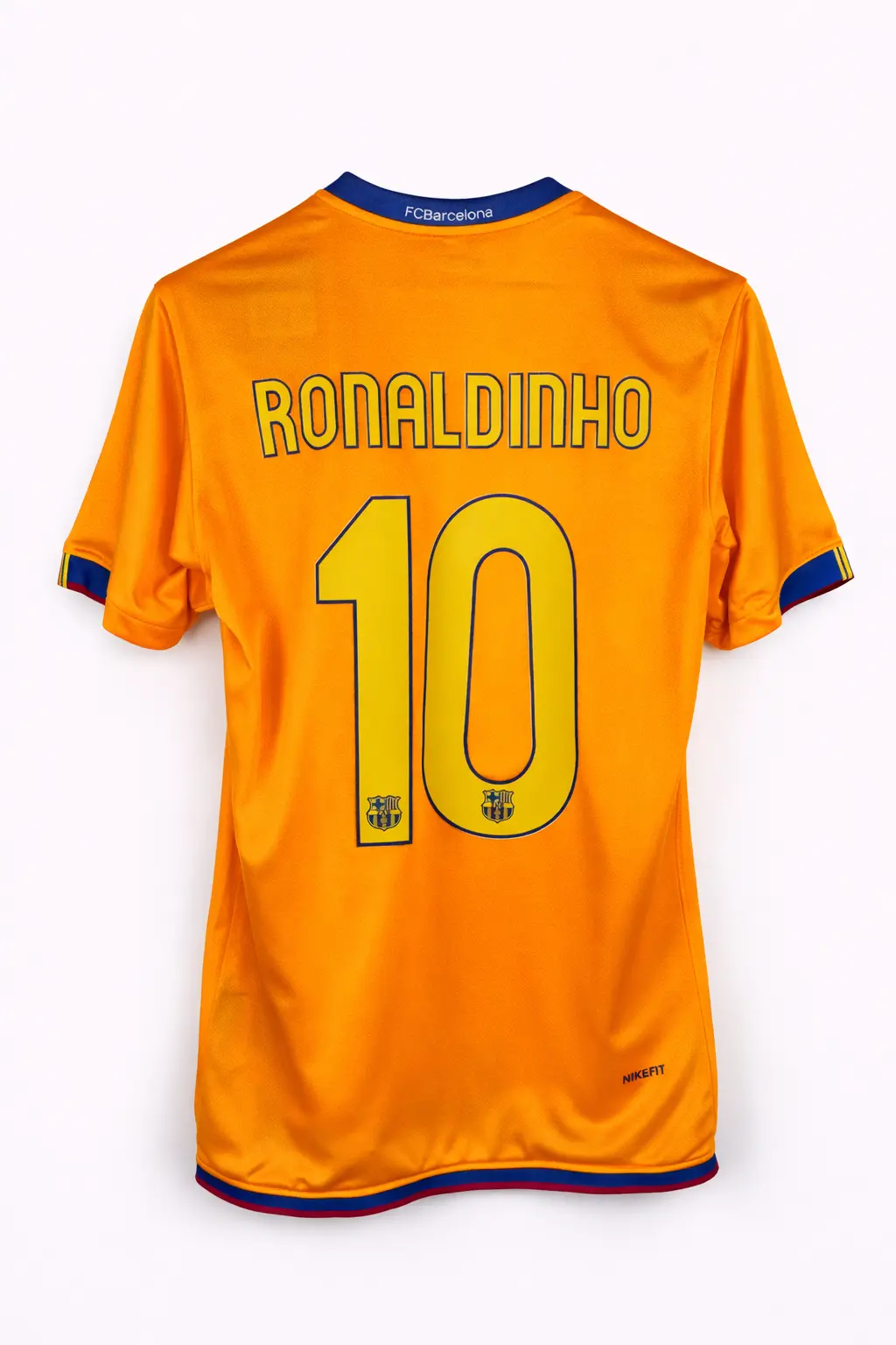 Футболка футбольная клуба Барселона с фамилией игрока Роналдиньо под номером 10, гостевой комплект сезона 2006/2007.