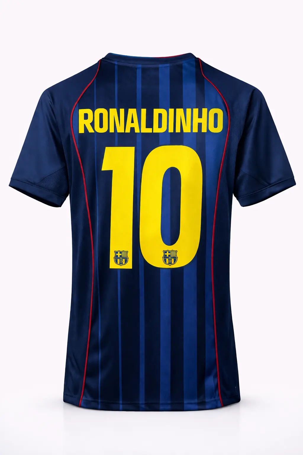 Футболка футбольная клуба Барселона с фамилией игрока Роналдиньо под номером 10, гостевой комплект сезона 2004/2005.