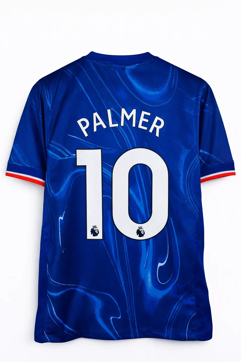 Футбольная футболка клуба Челси с фамилией игрока Палмер под номером 10, домашний комплект сезона 2024/2025.