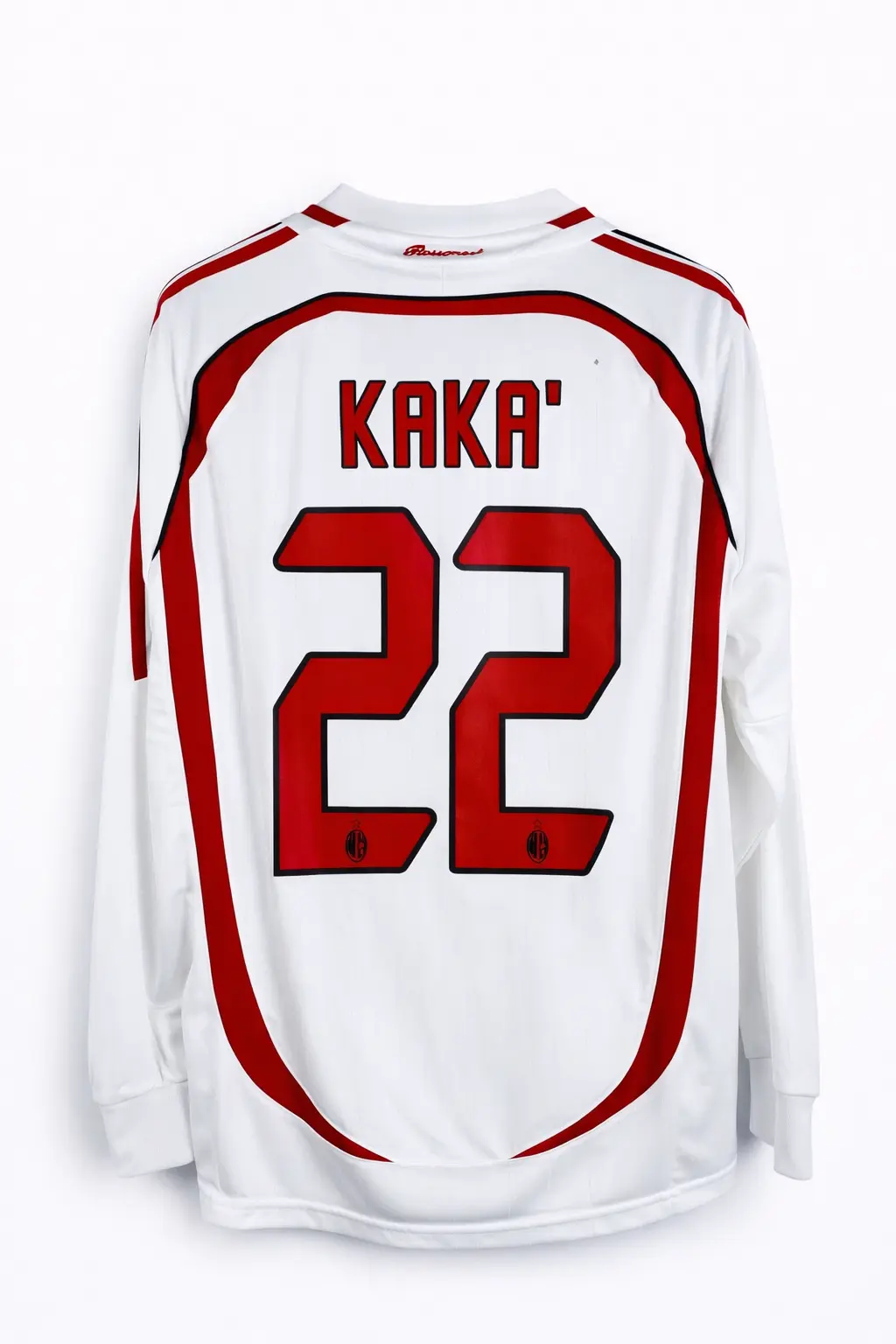 Футболка футбольная клуба АС Милан с фамилией игрока Рикарду Кака под номером 22, гостевой комплект сезона 2006/2007.