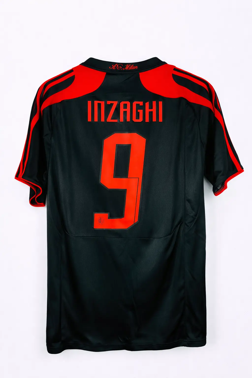 Футболка футбольная клуба АС Милан с фамилией игрока Филиппо Индзаги под номером 9, третий комплект сезона 2007/2008 .