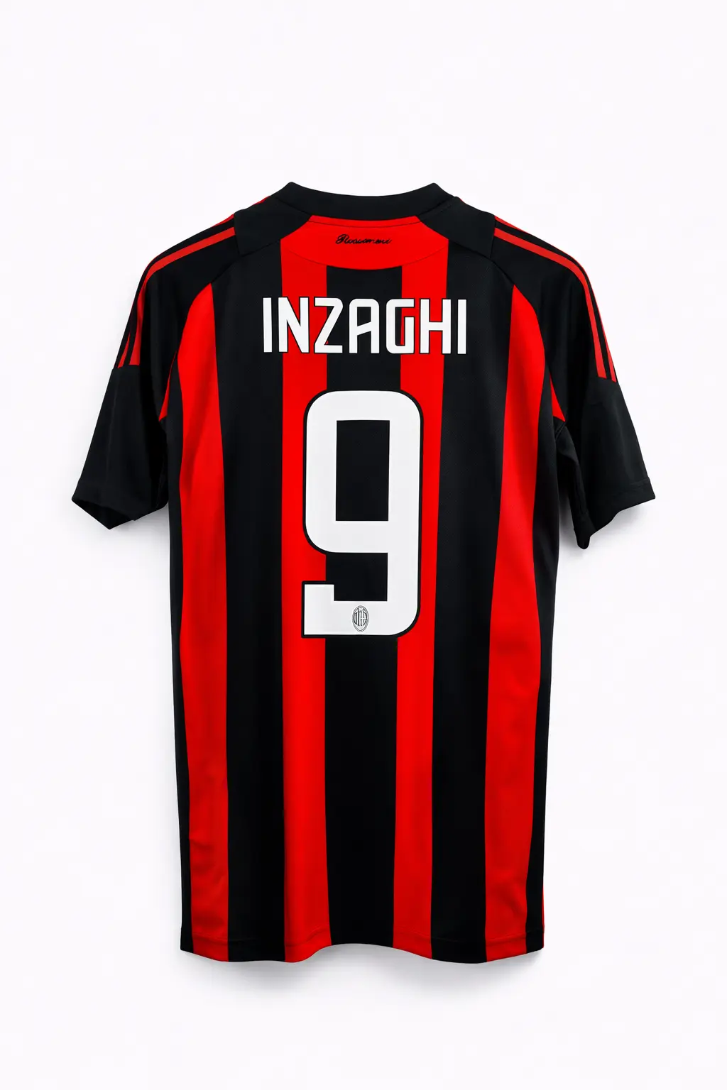 Футболка футбольная клуба АС Милан с фамилией игрока Филиппо Индзаги под номером 9, домашний комплект сезона 2008/2009.