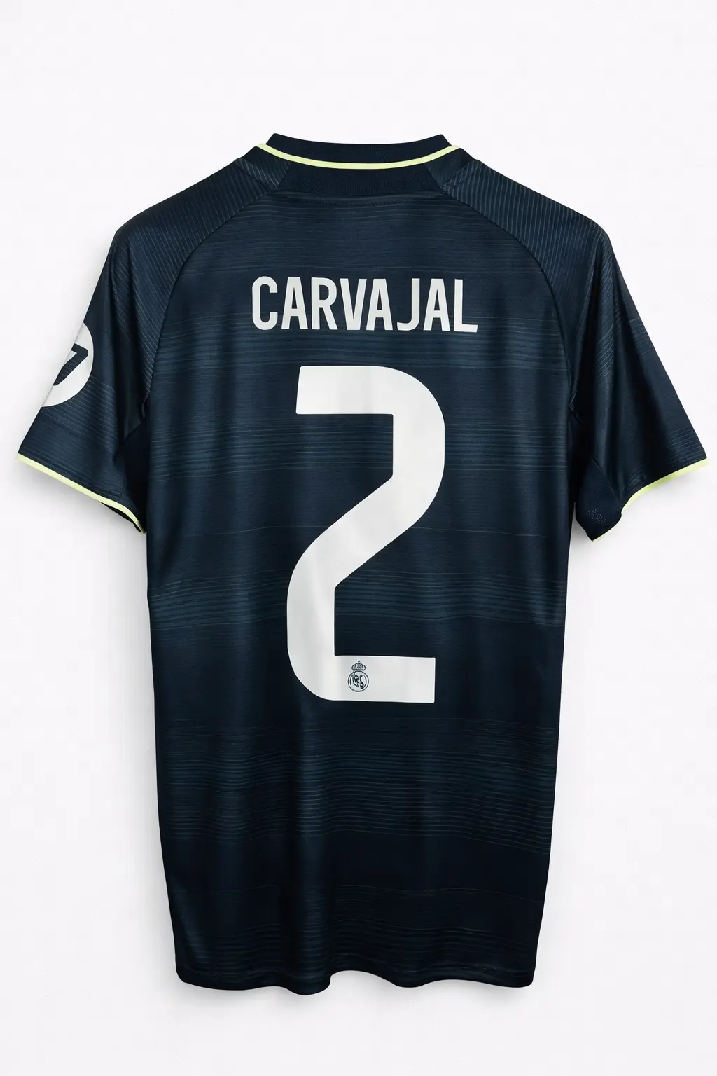 Футболка футбольная клуба Реал Мадрид с фамилией игрока Карвахаль под номером 2, гостевой комплект сезона 2025/2026.