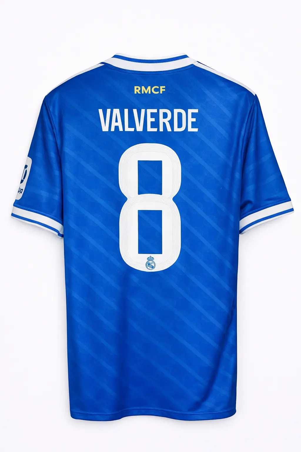Футболка футбольная Реал Мадрид 2025/2026 Вальверде 8, резервный (третий) комплект сезона 2025/2026.Погрузитесь в мир футбольного энтузиазма и покажите свою любовь к футболу с нашей стильной мужской футболкой, которая создана для настоящих фанатов! Если ты — преданный поклонник Реал Мадрида, то эта футбольная футболка станет отличным дополнением к твоему гардеробу. Яркий дизайн и высококачественные материалы делают её идеальным выбором как для матчей, так и для повседневной носки.Каждая деталь этой футболки вдохновлена духом игры, отражая атмосферу стадиона и поддерживая команду в любой ситуации. Удобный крой и дышащая ткань гарантируют комфорт даже в самые жаркие дни на трибунах или во время активных тренировок. Находясь среди других фанатов, ты сможешь без труда продемонстрировать свою приверженность Реал Мадриду.Не упустите шанс стать обладателем этой уникальной футболки! Многие уже оценили её качество и утонченность — присоединяйся к их числу. Покажи всему миру, что ты истинный поклонник, готовый поддержать свою любимую команду в любой ситуации. Не упусти возможность сделать свой стиль уникальным и выразить свою страсть к футболу, заказывая нашу футболку уже сегодня. Сделай шаг навстречу победам вместе с ХОДУ!