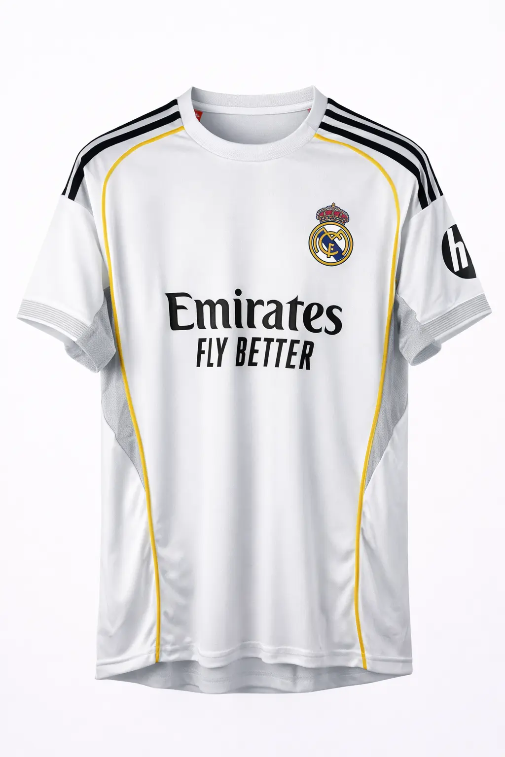 Футболка футбольная Реал Мадрид 2025/26.Погрузитесь в мир футбольного энтузиазма и покажите свою любовь к футболу с нашей стильной мужской футболкой, которая создана для настоящих фанатов! Если ты — преданный поклонник Реал Мадрида, то эта футбольная футболка станет отличным дополнением к твоему гардеробу. Яркий дизайн и высококачественные материалы делают её идеальным выбором как для матчей, так и для повседневной носки.Каждая деталь этой футболки вдохновлена духом игры, отражая атмосферу стадиона и поддерживая команду в любой ситуации. Удобный крой и дышащая ткань гарантируют комфорт даже в самые жаркие дни на трибунах или во время активных тренировок. Находясь среди других фанатов, ты сможешь без труда продемонстрировать свою приверженность Реал Мадриду.Не упустите шанс стать обладателем этой уникальной футболки! Многие уже оценили её качество и утонченность — присоединяйся к их числу. Покажи всему миру, что ты истинный поклонник, готовый поддержать свою любимую команду в любой ситуации. Не упусти возможность сделать свой стиль уникальным и выразить свою страсть к футболу, заказывая нашу футболку уже сегодня. Сделай шаг навстречу победам вместе с Реал Мадридом! ХОДУ
