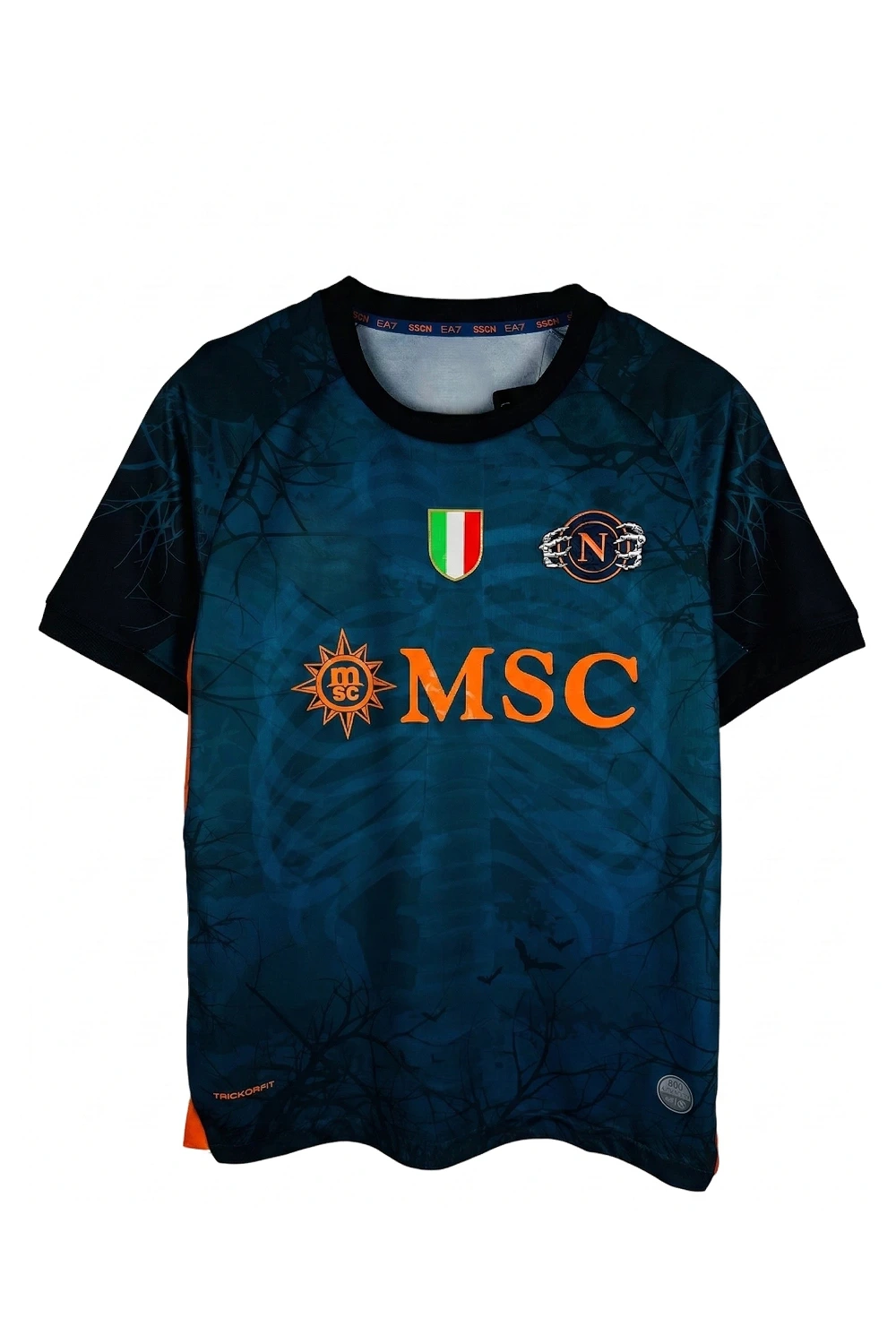Футболка футбольная клуба Наполи, специальный комплект формы «Наполи» (SSC Napoli) к Хэллоуину сезона 2025/2026. Этот комплект был выпущен ограниченным тиражом в октябре 2025 года в рамках продолжающейся традиции клуба выпускать форму, посвященную этому празднику.Погрузитесь в мир футбольного энтузиазма и покажите свою любовь к футболу с нашей стильной мужской футболкой, которая создана для настоящих фанатов! Если ты — преданный поклонник Наполи, то эта футбольная футболка станет отличным дополнением к твоему гардеробу. Яркий дизайн и высококачественные материалы делают её идеальным выбором как для матчей, так и для повседневной носки.Каждая деталь этой футболки вдохновлена духом игры, отражая атмосферу стадиона и поддерживая команду в любой ситуации. Удобный крой и дышащая ткань гарантируют комфорт даже в самые жаркие дни на трибунах или во время активных тренировок. Находясь среди других фанатов, ты сможешь без труда продемонстрировать свою приверженность Наполи .Не упустите шанс стать обладателем этой уникальной футболки! Многие уже оценили её качество и утонченность — присоединяйся к их числу. Покажи всему миру, что ты истинный поклонник, готовый поддержать свою любимую команду в любой ситуации. Не упусти возможность сделать свой стиль уникальным и выразить свою страсть к футболу, заказывая нашу футболку уже сегодня. Сделай шаг навстречу победам вместе с Наполи!