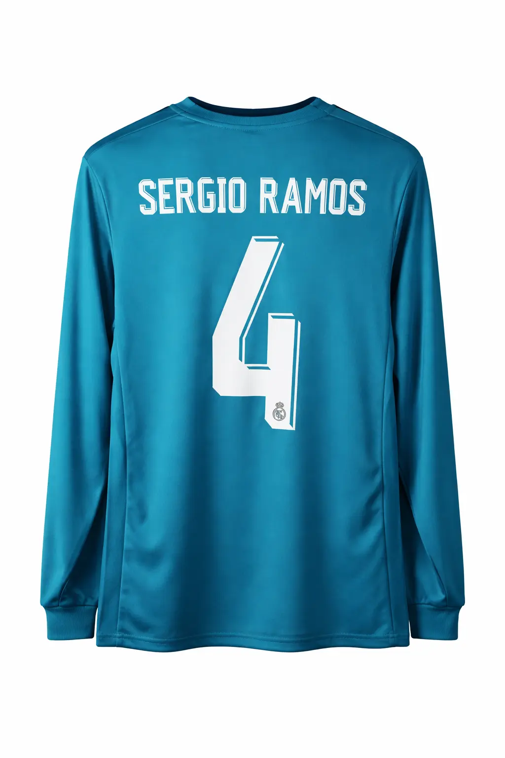 Футболка футбольная клуба Реал Мадрид с фамилией игрока Серхио Рамос под номером 4, третий (резервный) комплект сезона 2017/2018.