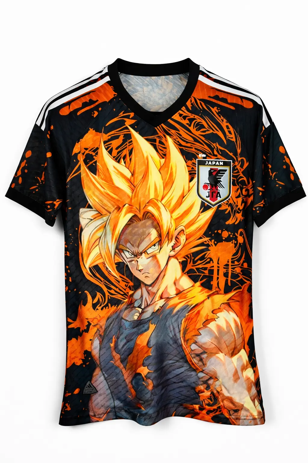 Специальная серия футбольной формы сборной Японии сезона 2024/2025, вдохновленная аниме «Dragon Ball Z» с изображением Гоку в форме Супер Сайяна.