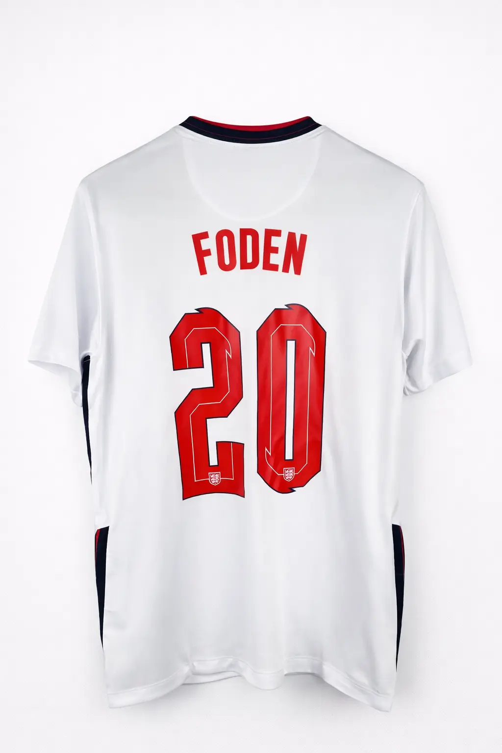 Футболка футбольная сборной Англии с фамилией игрока Фила Фодена под номером 20, домашний комплект ЕВРО2020.