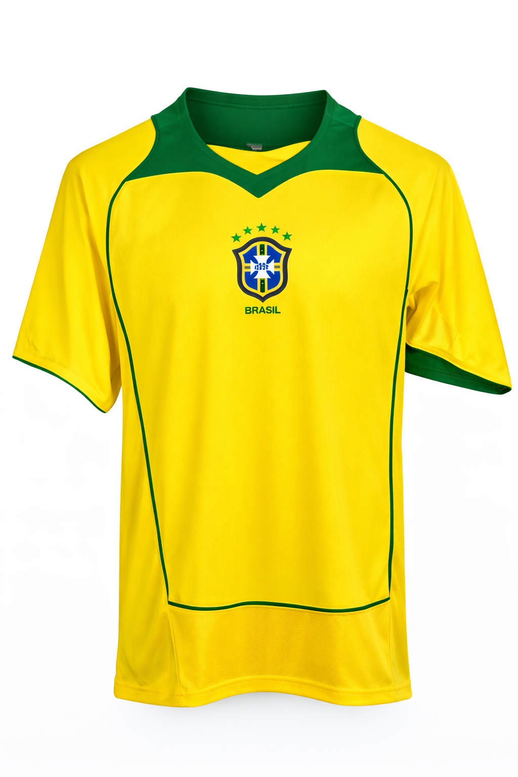 Футболка футбольная Сборной Бразилии, домашний комплект 2004-2006 годов.Погрузитесь в мир футбольного энтузиазма и покажите свою любовь к футболу с нашей стильной мужской футболкой, которая создана для настоящих фанатов! Если ты — преданный поклонник Сборной Бразилии, то эта футбольная футболка станет отличным дополнением к твоему гардеробу. Яркий дизайн и высококачественные материалы делают её идеальным выбором как для матчей, так и для повседневной носки.Каждая деталь этой футболки вдохновлена духом игры, отражая атмосферу стадиона и поддерживая команду в любой ситуации. Удобный крой и дышащая ткань гарантируют комфорт даже в самые жаркие дни на трибунах или во время активных тренировок. Находясь среди других фанатов, ты сможешь без труда продемонстрировать свою приверженность Сборной Бразилии.Не упустите шанс стать обладателем этой уникальной футболки! Многие уже оценили её качество и утонченность — присоединяйся к их числу. Покажи всему миру, что ты истинный поклонник, готовый поддержать свою любимую команду в любой ситуации. Не упусти возможность сделать свой стиль уникальным и выразить свою страсть к футболу, заказывая нашу футболку уже сегодня. Сделай шаг навстречу победам вместе со Сборной Бразилии! ХОДУ