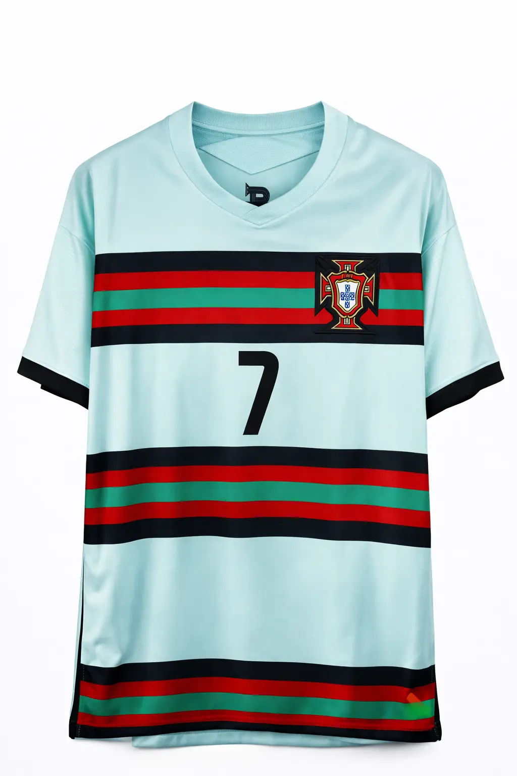 Футболка футбольная сборной Португалии с фамилией игрока Криштиану Роналду под номером 7, гостевой комплект сезона 2020/2021.