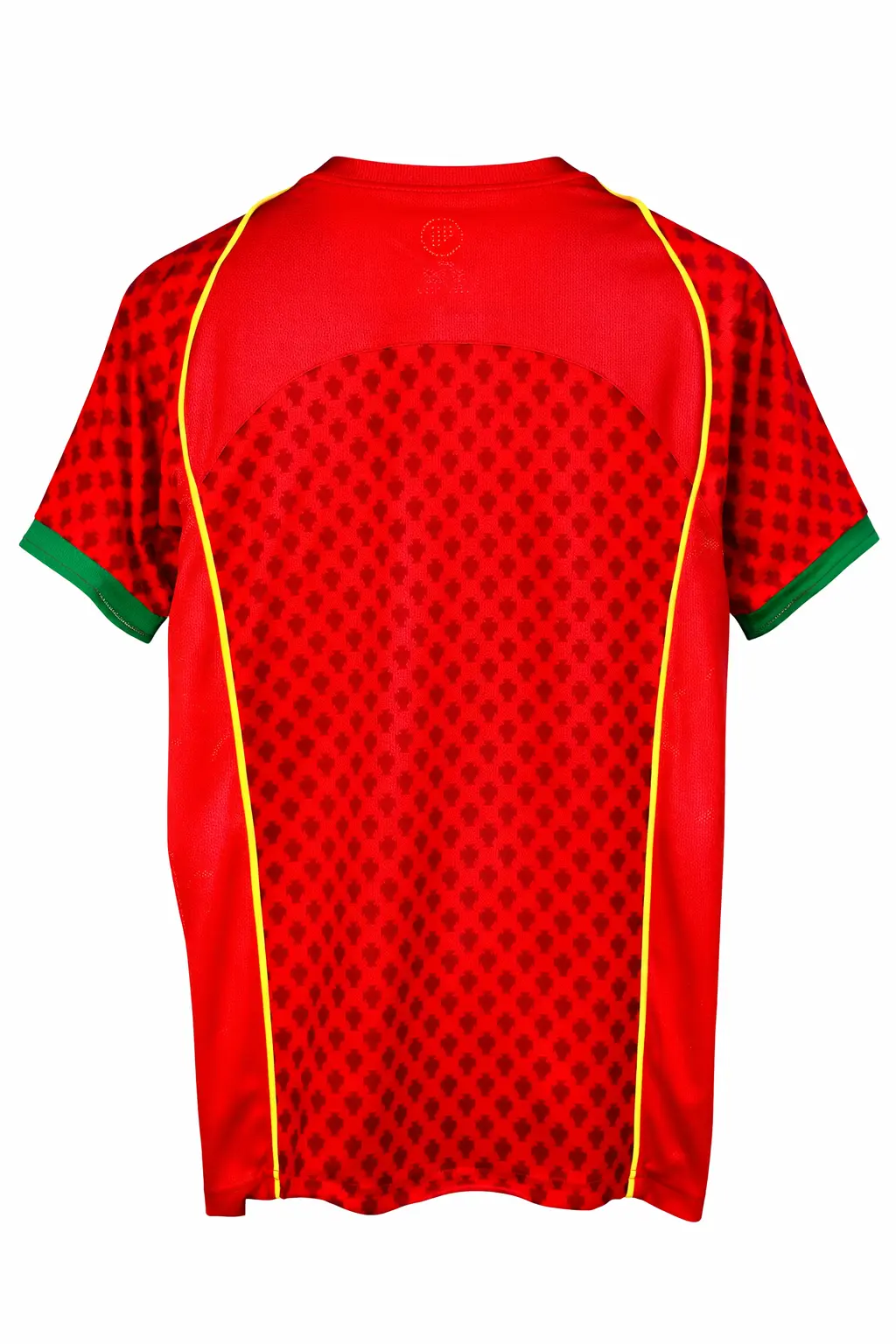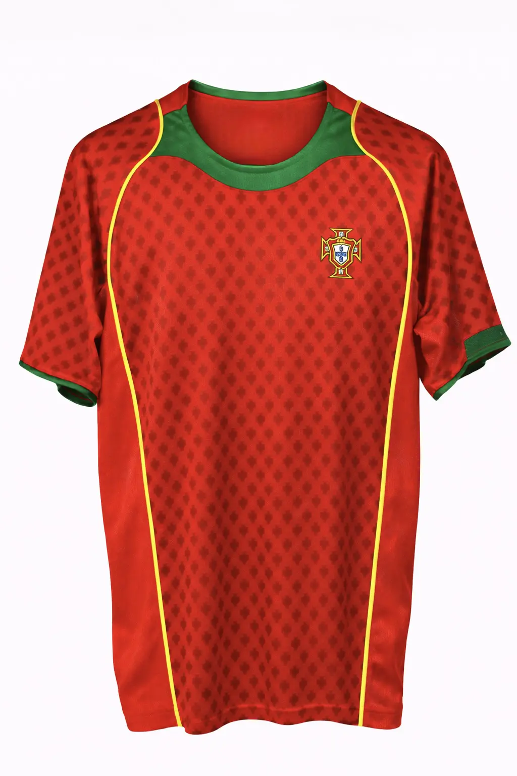 Футболка футбольная Сборной Португалии домашний комплект Евро-2004.Погрузитесь в мир футбольного энтузиазма и покажите свою любовь к футболу с нашей стильной мужской футболкой, которая создана для настоящих фанатов! Если ты — преданный поклонник Сборной Португалии, то эта футбольная футболка станет отличным дополнением к твоему гардеробу. Яркий дизайн и высококачественные материалы делают её идеальным выбором как для матчей, так и для повседневной носки.Каждая деталь этой футболки вдохновлена духом игры, отражая атмосферу стадиона и поддерживая команду в любой ситуации. Удобный крой и дышащая ткань гарантируют комфорт даже в самые жаркие дни на трибунах или во время активных тренировок. Находясь среди других фанатов, ты сможешь без труда продемонстрировать свою приверженность Сборной Португалии.Не упустите шанс стать обладателем этой уникальной футболки! Многие уже оценили её качество и утонченность — присоединяйся к их числу. Покажи всему миру, что ты истинный поклонник, готовый поддержать свою любимую команду в любой ситуации. Не упусти возможность сделать свой стиль уникальным и выразить свою страсть к футболу, заказывая нашу футболку уже сегодня. Сделай шаг навстречу победам вместе с Сборной Португалии! ХОДУ