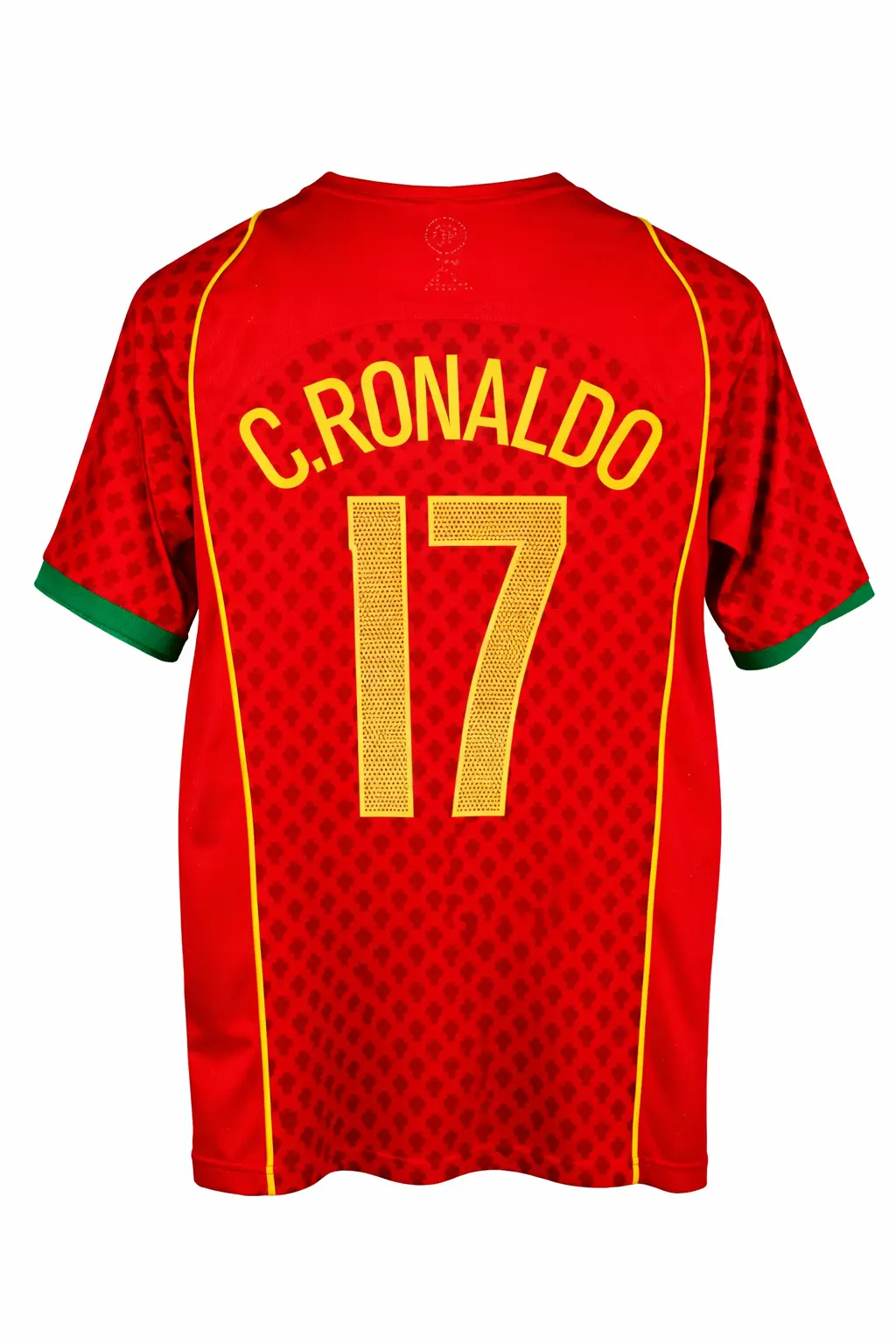 Футболка футбольная сборной Португалии с фамилией игрока Криштиану Роналду под номером 17, домашний комплект Евро-2004.