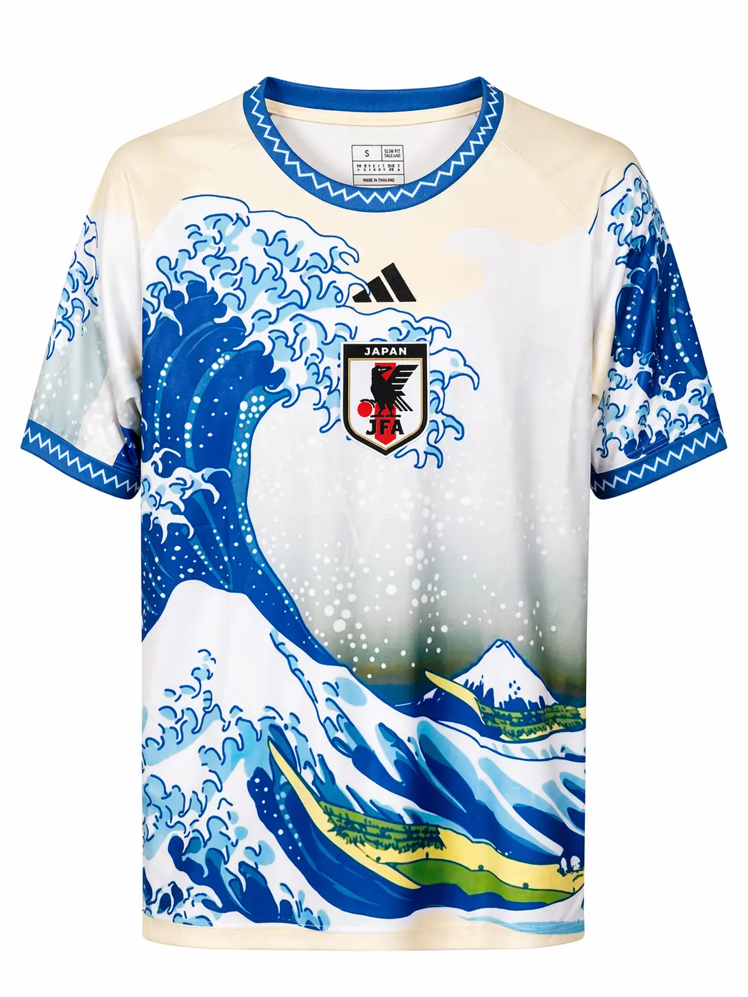 Данная модель сборной Японии по футболу специального выпуска, вдохновленная знаменитой гравюрой Кацусики Хокусая «Большая волна в Канагаве». Эта дизайнерская концепция превращает спортивную форму в произведение искусства, отдающее дань уважения традиционному японскому искусству укиё-э. На форме изображены стилизованные волны Канагавы перед горой Фудзи.