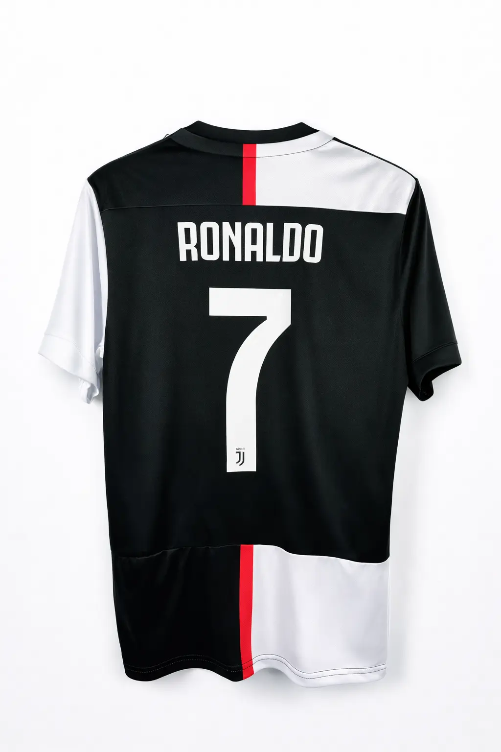 Футболка футбольная клуба Ювентус с фамилией игрока Криштиану Роналду под номером 7, домашний комплект сезона 2019/2020.